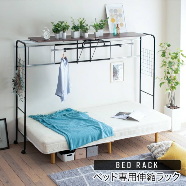 ベッド用 ハンガー ラック ベッド上 棚 収納 キャスター付き 伸縮式 上棚 奥行き40 高さ149 ブラック ダークブラウン ハンガーラック 収納付き 衣類 スチール沖縄、離島への送料は別途お見積もり。メーカー発送のため代引き不可です。