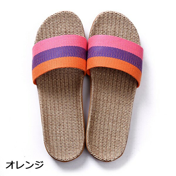 前開き 麻スリッパ 【色とサイズが選べる】 ボーダー柄 マルチカラー 静音 軽量サンダル 春 夏 オールシーズン対応 レディース メンズ ルームシューズ 室内履き ベランダ用 自宅用 来客用にお薦め【代引不可です】